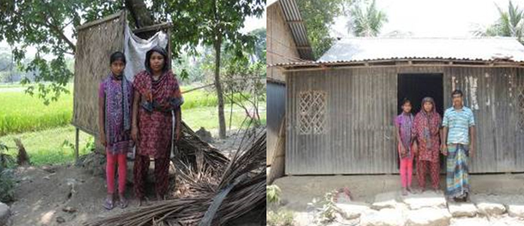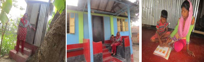 Rina Begum is a member of the SDS MF group “Karnofuly Mohila Samiti” since 16 years. She works as a housewife. Her husband (Ali Azam Sikdar) is a rickshaw puller. However, he doesn’t own the rickshaw but rents it on a daily basis. He pulls the rickshaw 7 days a week and takes off only when he is sick. His average income is 500 taka/day. Rina Begum feels proud to be a samiti-member since such a long time and the group supported her as a strong candidate to get help in constructing a new house. Rina Begum has one daughter and two sons. Urme is the 13 year old daughter of Rina Begum. She reads in class seven.
